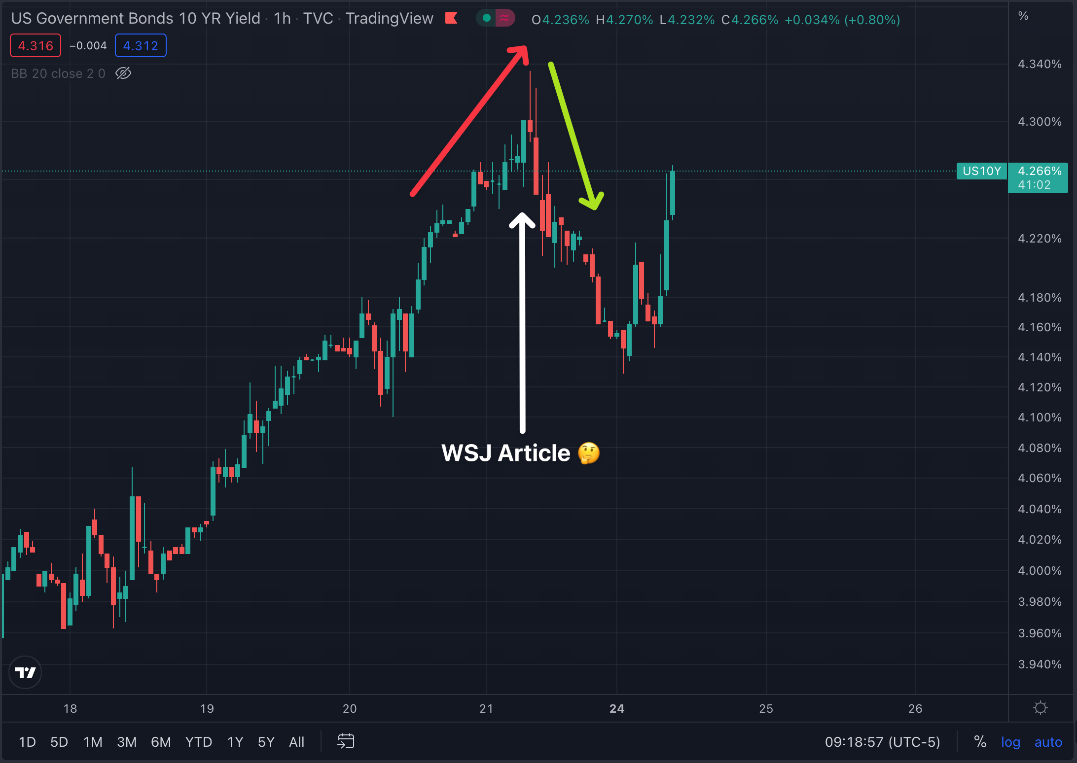 On Friday, you could sense the bond market panicking. 10-year treasury yields, commonly used to gauge the trend in mortgage interest rates, broke the highest levels in over a decade. Coincidentally, this Wall Street Journal article was released at 8 am that morning, suggesting the rate hike increments would be up for discussion at the next meeting.